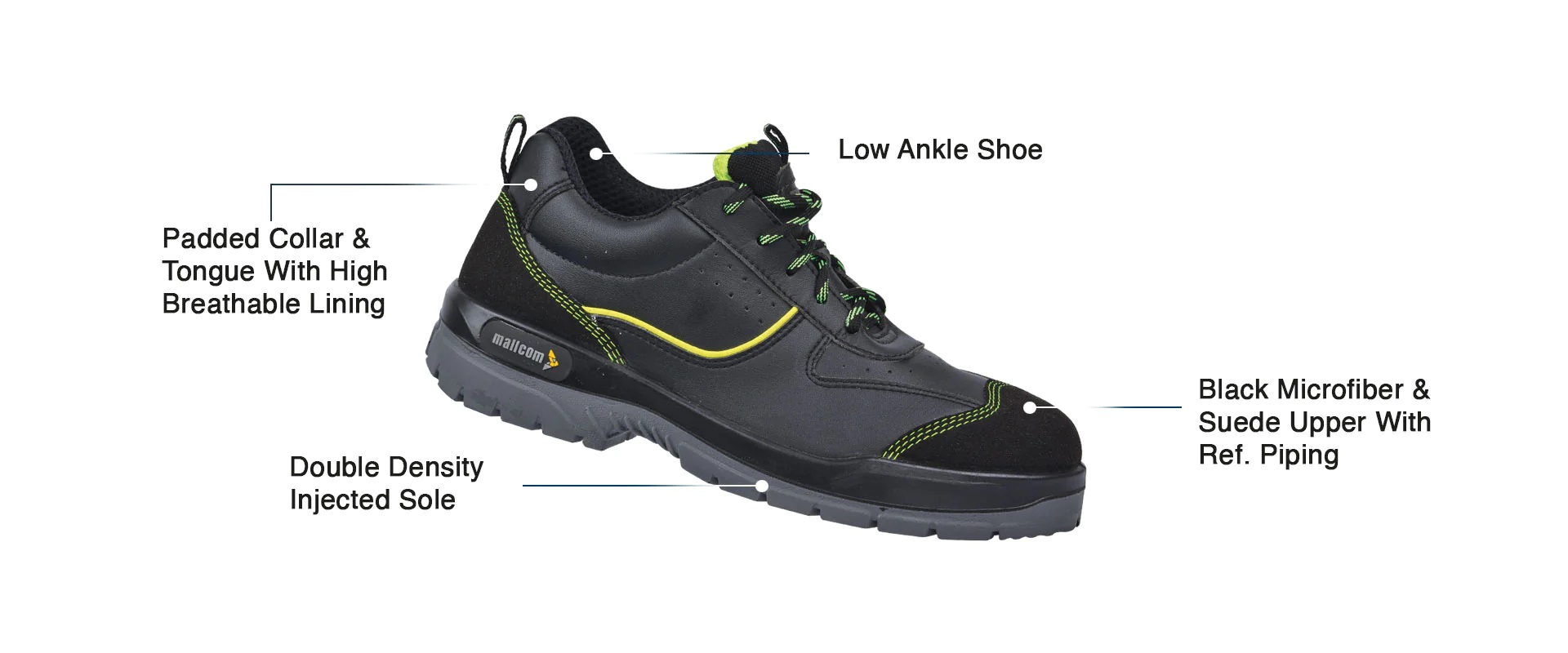 RUFUS K01(S1P) Low-Ankle Safety Shoes, Microfibre & Synthetic Suede, Double Density PU Outsole, 200J Steel Toe Cap, and Corrosion & Penetration Resistant Mid-Plate